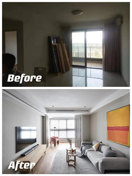 中山旧房改造案例,90m²极简风格三居室装修效果图