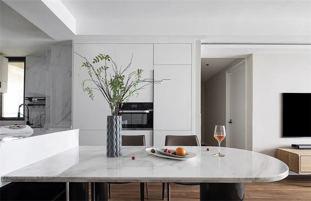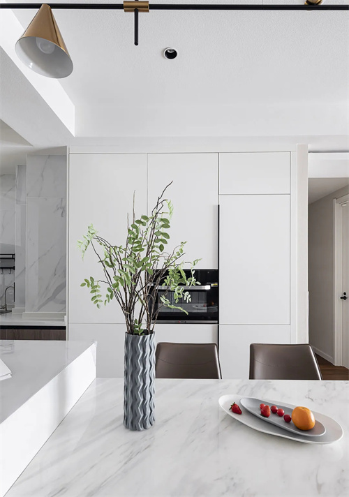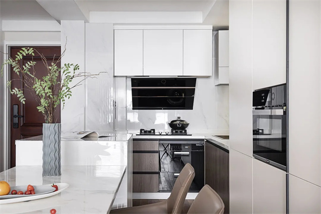 L型开放式厨房布局宽敞明亮,整洁有序,让理想中的美食有了更多的互动性和可能性。
