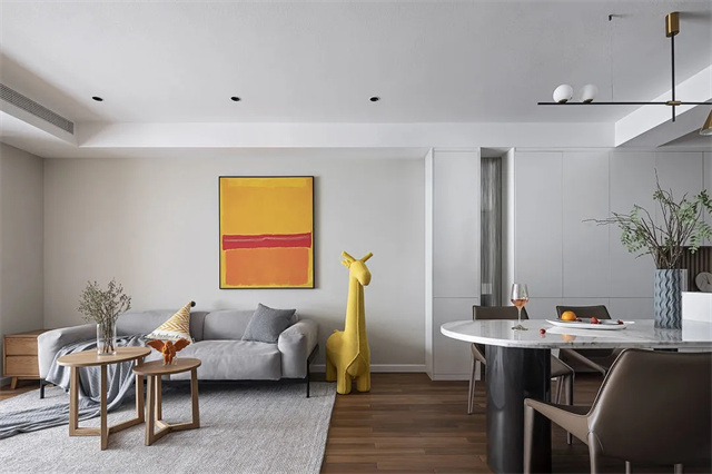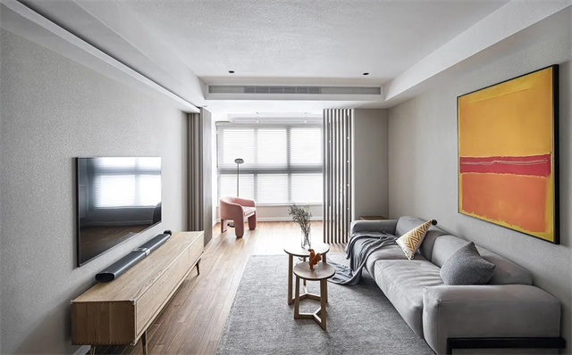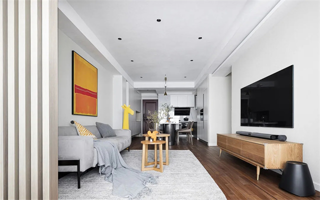 硬装线条回归简约,无主灯设计+局部吊顶,让层高更为开阔。
