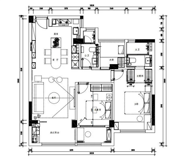 1. 去掉一部分非承重墙,将原封闭厨房改为开放式。